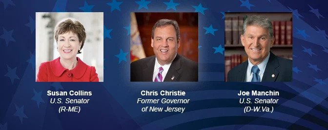 “As our country tries to find real solutions to the challenges we face, there are not two more important U.S. Senators to that task than Joe Manchin and Susan Collins,” Christie said. “The Christie Institute is honored to host them both at this crucial time in our nation’s history.”